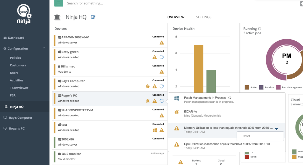 Remote Monitoring and Management tool for Customer Networks and Devices with Ninja RMM.